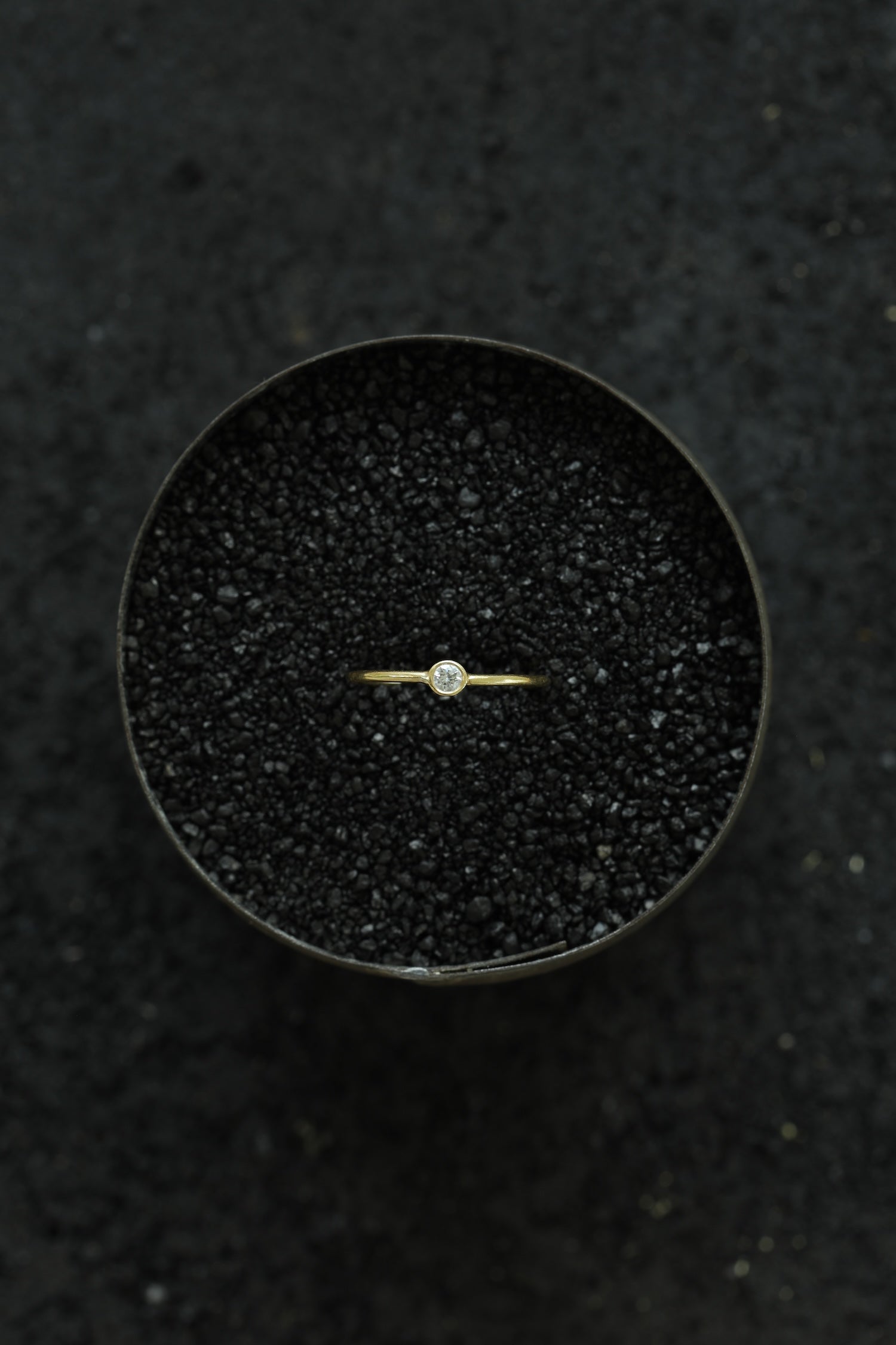 18k gold ring with .05ct white diamond bezel set in a round band.