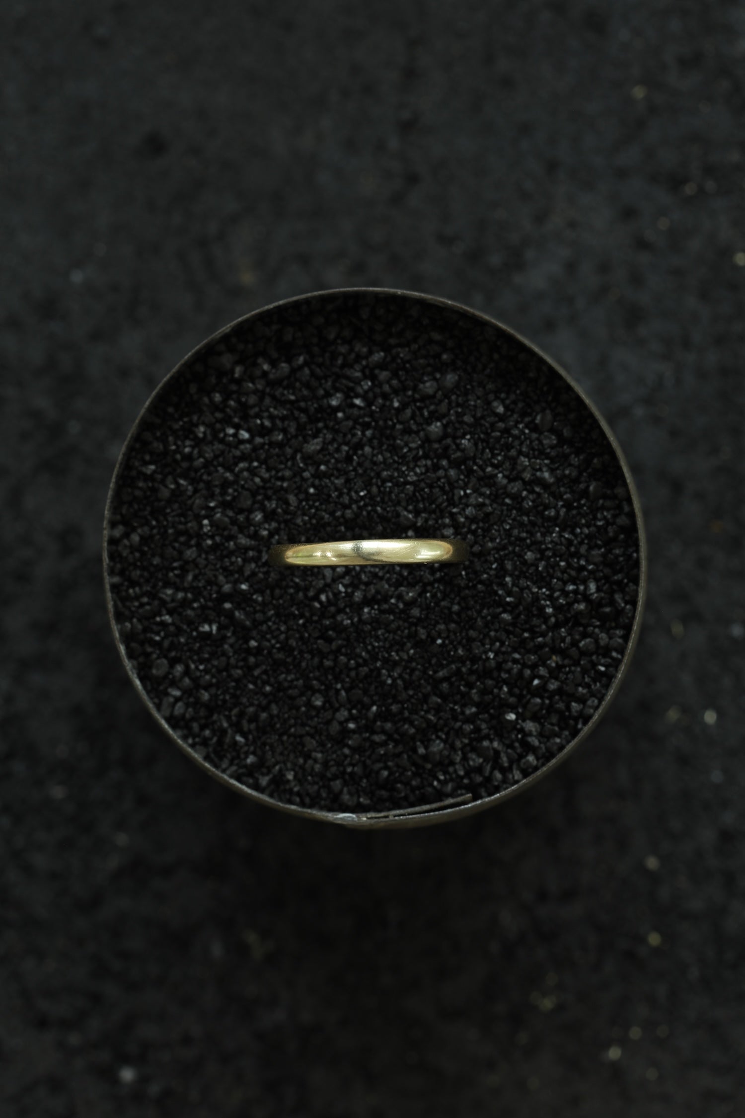 Hand tapered band that was originally carved and tapered out of wax, then cast into gold. The tapering is subtle and lovely.
