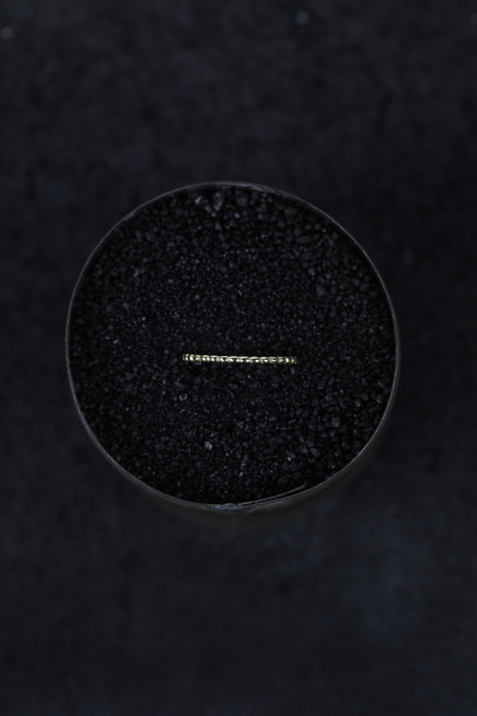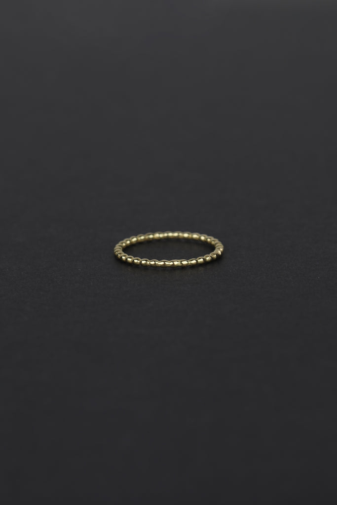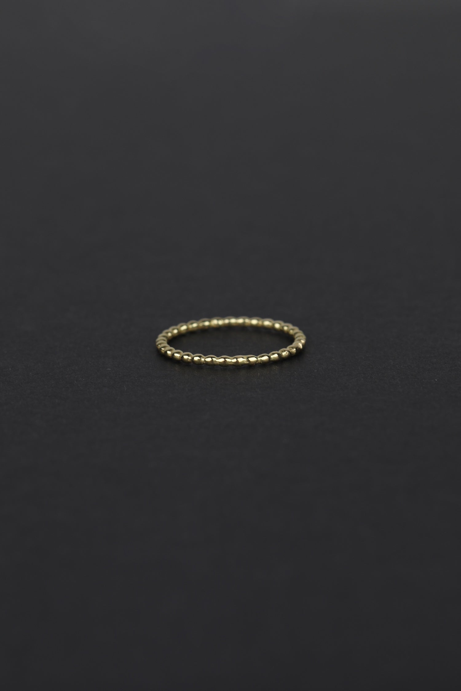 18k gold, thin beaded band. Wear alone or combine with other rings.