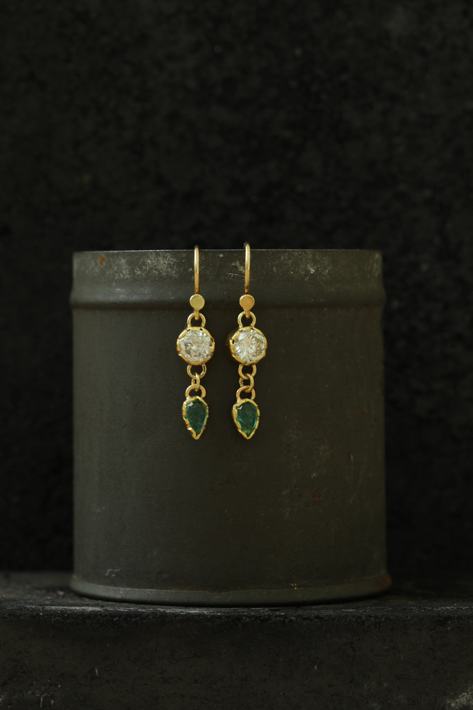 Pear Shaped Rose Cut Diamond Drop Earrings
