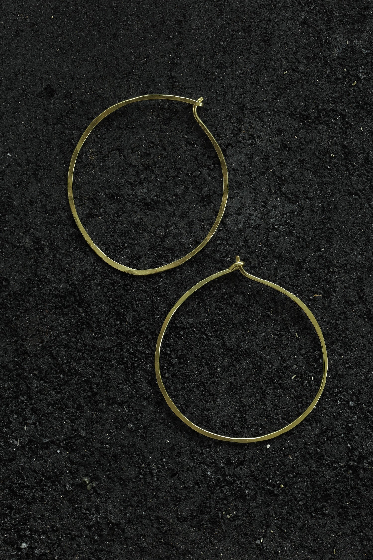 Hand hammered hoops that have a sweet loop and hook finish. The hammered texture picks up the light beautifully.